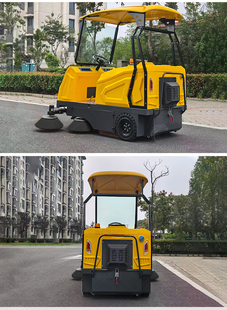 It is a fully enclosed driving sweeper. This sweeping vehicle is suitable for indoor and outdoor cleaning operations in cleaning companies, property management companies, parks, sanitation, rural streets, sidewalks, squares, and universities.